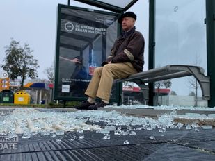 · “Het lijkt net sneeuw”, zegt buurtbewoner Ben de Aantrekker sarcastisch als hij de schade bij de bushalte aan de Gagelboslaan in Bergen op Zoom opneemt.