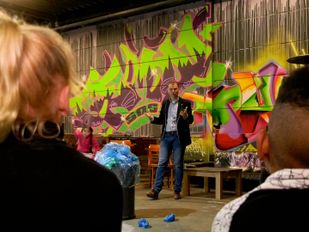 · Donderdagochtend was de kick-off van project Gelijke Kansen in Roosendaal. Tussen de graffiti-workshops door, worden de kinderen bijgepraat over het…