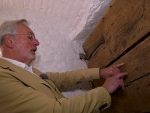 · Ogenschijnlijke krassen in een deur van de middeleeuwse gevangenpoort in Bergen op Zoom verwijzen naar proefkolonie Frederiksoord. Deze plek in…