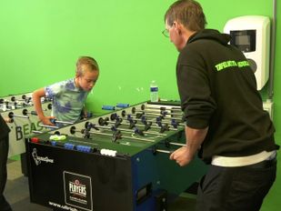· Joran Rombouts heeft in Bergen op Zoom een uniek tafelvoetbalcentrum. Op twintig tafels hoopt hij donderdag een wereldrecord te zetten.