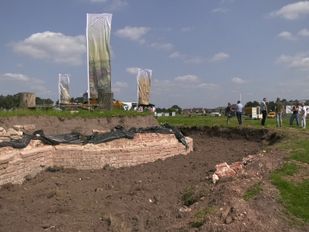 · De werkzaamheden aan het voormalige Kasteel van Wouw zijn donderdagmiddag gestart. Wethouder Inge Raaijmakers en voorzitter Kees Hoendervangers verrichten samen de eerste officiële schep.