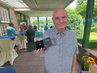 · Patrick Peeters, oud-voorzitter van Veilig Verkeer Nederland afdeling Roosendaal, kreeg vrijdagmiddag de Roosenspeld overhandigd.