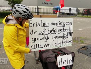 · Ze is een opvallende verschijning: protest-oma Gemma Engelen (73) uit Zegge. Gehuld in een gele jas en op een fiets…