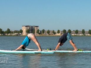 · Wie denkt dat op een drijvende surfplank blijven staan al moeilijk is, kan nu in Bergen op Zoom helemaal zijn…