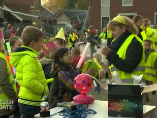 · Leerlingen basisschool Sint-Maarten in Halsteren goed zichtbaar op pad
