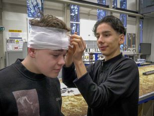 · De leerlingen van de Bergse school krijgen les van een professional en verlaten de school als jeugd EHBO'er.