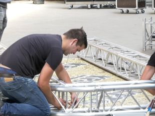 · Zwaarden, een nagebootste markt en een grote showtrap. Theatergroep Max Mini uit Etten-Leur is druk aan het repeteren voor hun nieuwe musical.