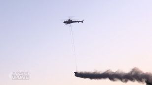 · Een opmerkelijke gezicht boven Landgoed Lievensberg in Bergen op Zoom. Boven het bos vliegt donderdag en vrijdag een helikopter die…