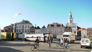 · Het is dinsdagochtend passen en meten met het plaatsen van grote kermisattracties in het centrum van Bergen op Zoom. Maar…