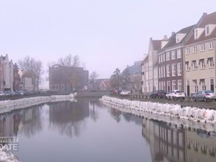 · Al ruim een jaar wordt het uitzicht van de bewoners van de Oude Binnenhaven gedomineerd door een rij witte zandzakken.