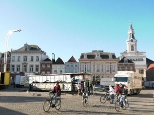 · Het is dinsdagochtend passen en meten met het plaatsen van grote kermisattracties in het centrum van Bergen op Zoom. Maar…