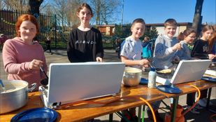 · Leerlingen van basisschool de Wegwijzer in Lepelstraat bakken pannenkoeken speciaal voor de oorlogsslachtoffers in Oekraïne.