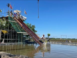 · Tropische temperaturen, ijs, muziek en heel veel waterpret. Tientallen deelnemers sjeesden zondag in zelfgemaakte bootjes van een steile waterschans af,…